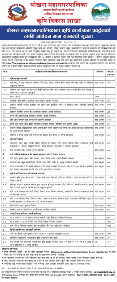 कृषि कार्यक्रम प्रवर्द्धनको लागि आवेदन माग सम्बन्धी सूचना।