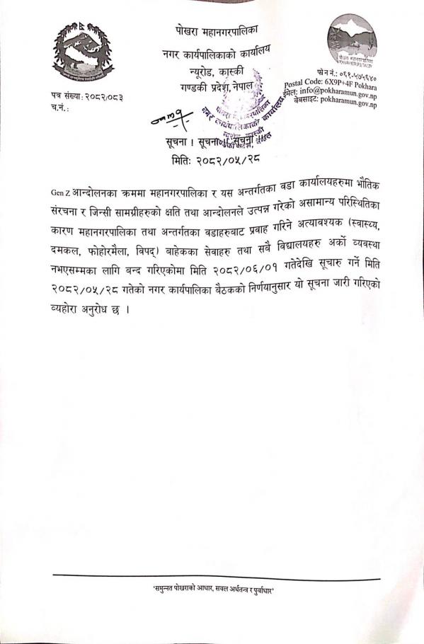 वा mayor[at]pokharamun.gov.np मा इमेल गर्न सक्नुहुन्छ । हाल सम्म पोखरा महानगरपालिकाले विभिन्न सहर सँग भगिनी सम्बन्ध कायम गरी सम्बन्ध विस्तार गरिसकेको छ ।