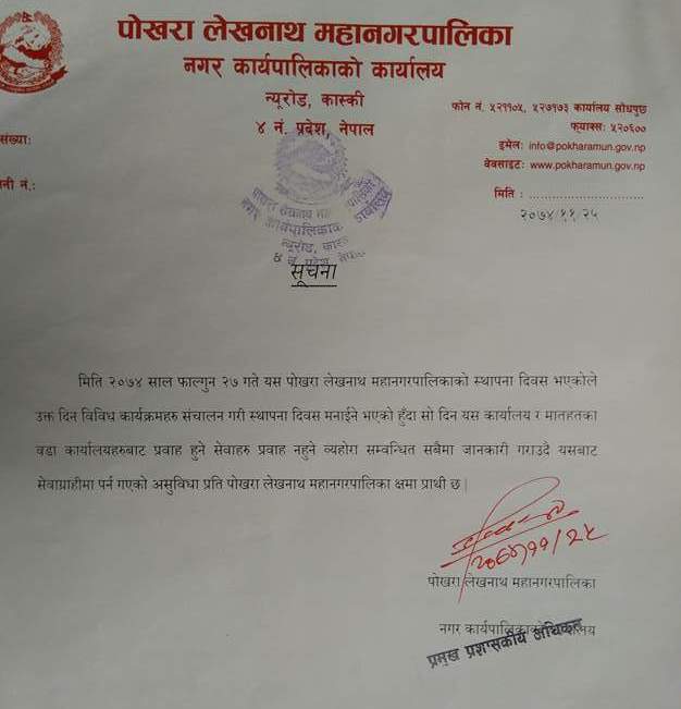 २०७४ फाल्गुन २७ गते सेवा प्रवाह नहुने सम्बन्धमा |